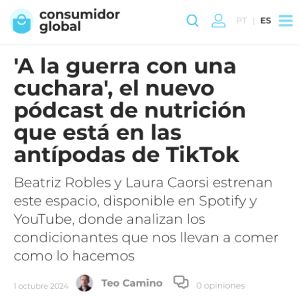 Consumidor global. ‘A la guerra con una cuchara’, el nuevo pódcast de nutrición que está en las antípodas de TikTok. | 01.10.24