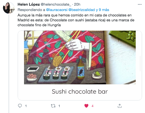 Empezó con un tuit, continuó con un hilo colectivo y acabó como inventario de maravillas desconcertantes. El chocolate despierta pasiones y, al parecer, combina con casi todo: del brócoli al sushi, del chorizo al cannabis y de las anchoas a las hormigas (y sus huevas). Si te gustan las emociones encontradas o quieres experimentar una mezcla de fascinación y repelús, echa un vistazo a lo que sigue. Estos son algunos de los ejemplares más sorprendentes de chocolate con cosas que demos descubierto en estos días.