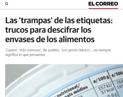 El Correo. Las ‘trampas’ de las etiquetas: trucos para descifrar los envases de los alimentos | 16.06.24