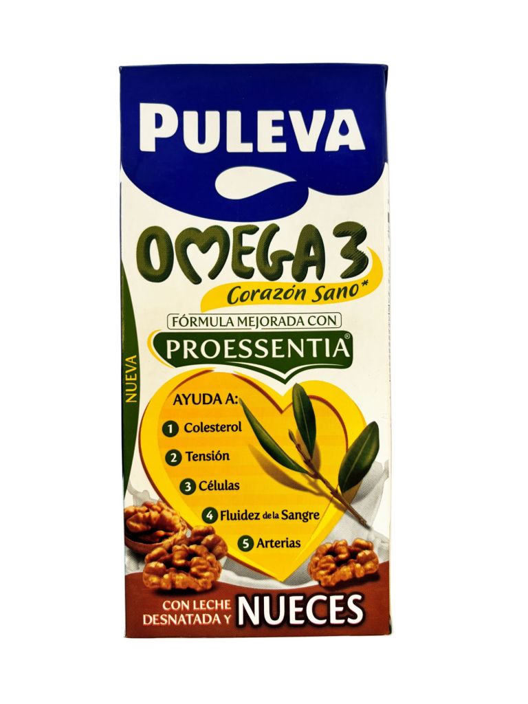 LECHE desnatada (80%), permeado de LECHE reconstituído, aceites vegetales (girasol alto oleico y oliva (0,05%)), emulgentes (lecitinas(SOJA)) y ésteres cítricos de monoglicéridos y diglicéridos), estabilizantes (citrato tripotásico, E-460 y E-466), aceite de PESCADO azul, extracto de malta, preparado de NUEZ en polvo (0,04% de NUEZ), fosfato tricálcico, aroma, vitaminas (A, B6, ácido fólico, C, D, E y B12), antioxidantes (extracto rico en tocoferoles y palmitato de ascorbilo), extracto de té verde (0,005%), extracto de uva (0,001%) y edulcorante (sucralosa).