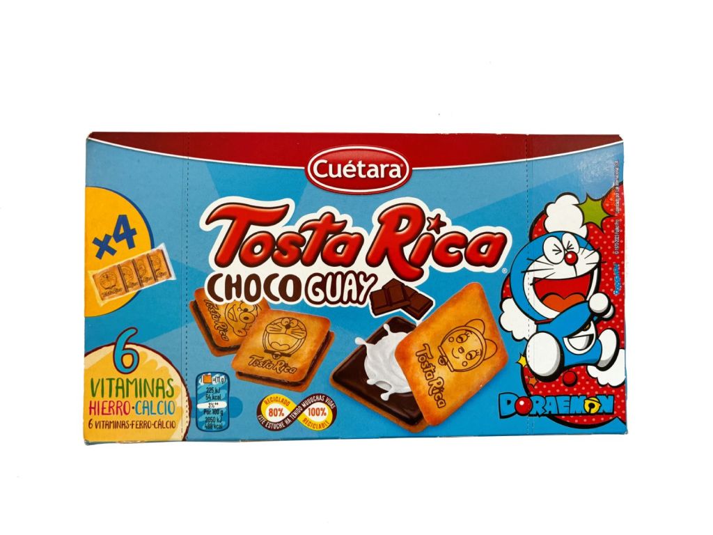 Harina de TRIGO (47%), azúcar, aceites vegetales (palma, girasol, nabina), cacao desgrasado en polvo, suero LÁCTEO en polvo, clara de HUEVO, LECHE en polvo, jarabe de glucosa y fructosa, maltodextrina, LACTOSA, gasificantes (carbonato de sodio y carbonato de amonio), emulgente: lecitinas (contiene SOJA y TRIGO), sal, colorante: E150d (contiene SULFITOS), aromas (contiene LECHE), vitaminas (A, D, tiamina (B1), riboflavina (B2), niacina (B3), B6), sales minerales (hierro elemental y carbonato de calcio), agente de tratamiento de la harina (METASULFITO sódico). Puede contener FRUTOS DE CÁSCARA.